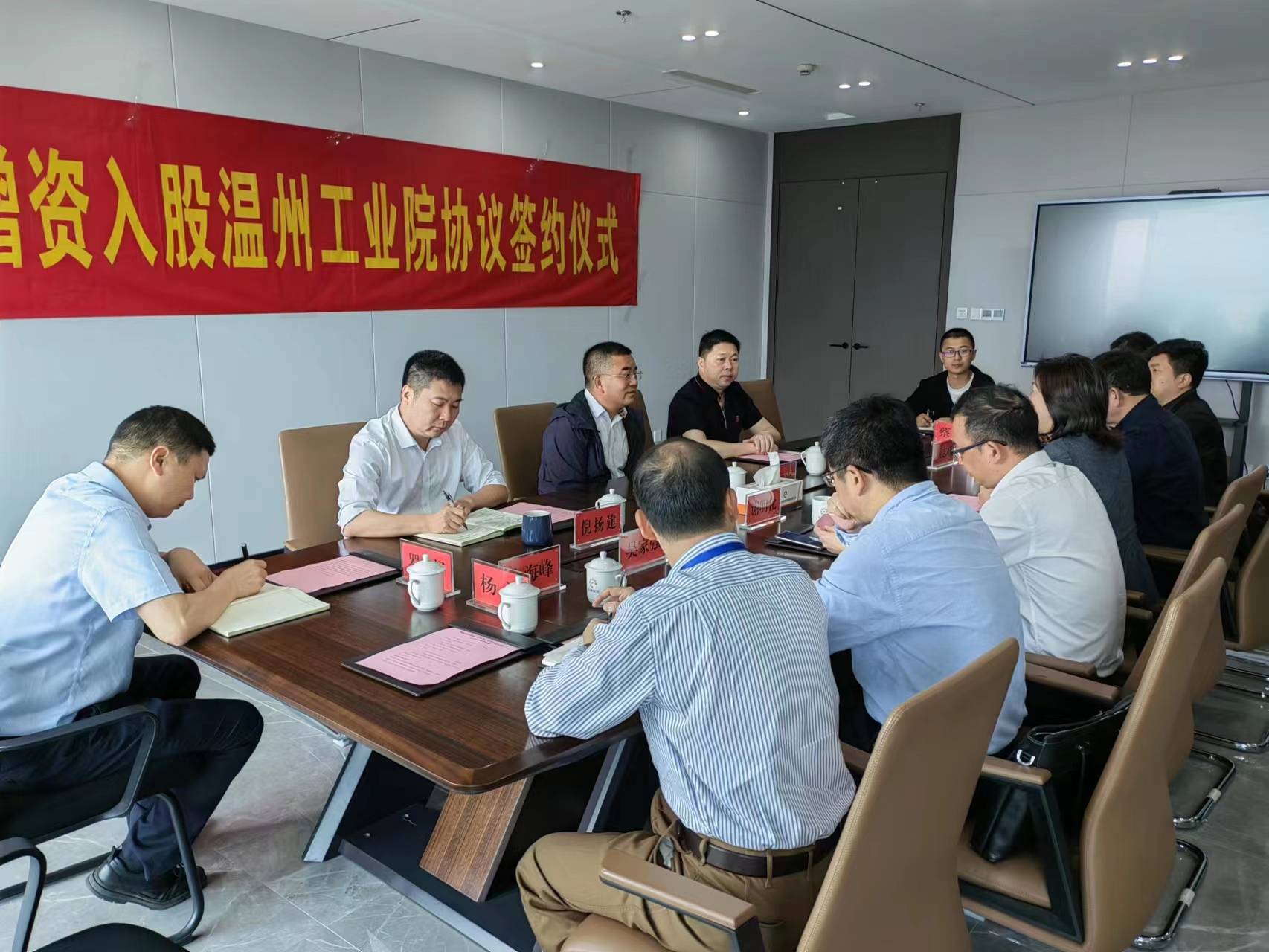為落實(shí)《市屬國企穩(wěn)進(jìn)提質(zhì)增資擴(kuò)能攻堅(jiān)行動方案》的部署要求,加快國資國企合作步伐,進(jìn)一步優(yōu)化國有資本布局結(jié)構(gòu),5月8日上午,樂清城市建設(shè)投資集團(tuán)有限公司(以下簡稱:樂清城投集團(tuán))增資入股溫州設(shè)計(jì)集團(tuán)工業(yè)設(shè)計(jì)院簽約儀式在樂清城投集團(tuán)總部大樓隆重舉行。溫州設(shè)計(jì)集團(tuán)黨委副書記、副董事長、總經(jīng)理陳春雷與樂清城投集團(tuán)黨委書記、董事長余福平共同簽署增資入股協(xié)議。溫州設(shè)計(jì)集團(tuán)黨委副書記、副總經(jīng)理謝明化,總建筑師項(xiàng)志峰,樂清城投集團(tuán)總經(jīng)理王云雷 、副總經(jīng)理倪揚(yáng)建等共同參加。